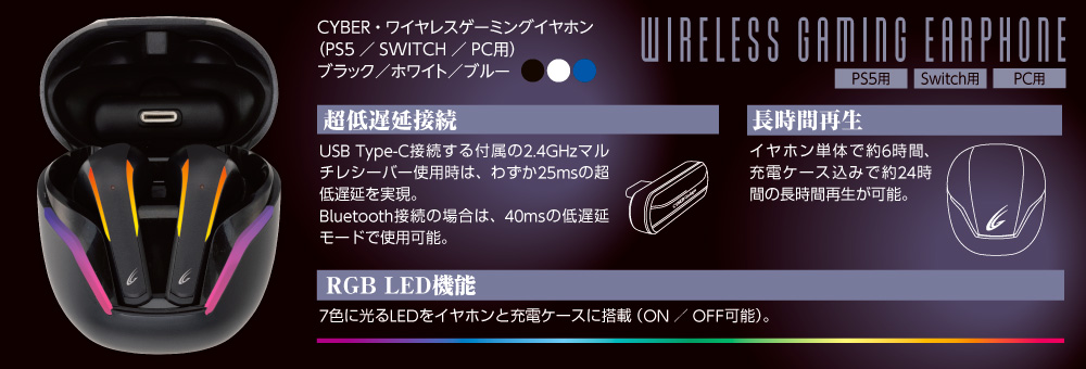 CYBER・ワイヤレスゲーミングイヤホン(PS5/SWITCH/PC用)