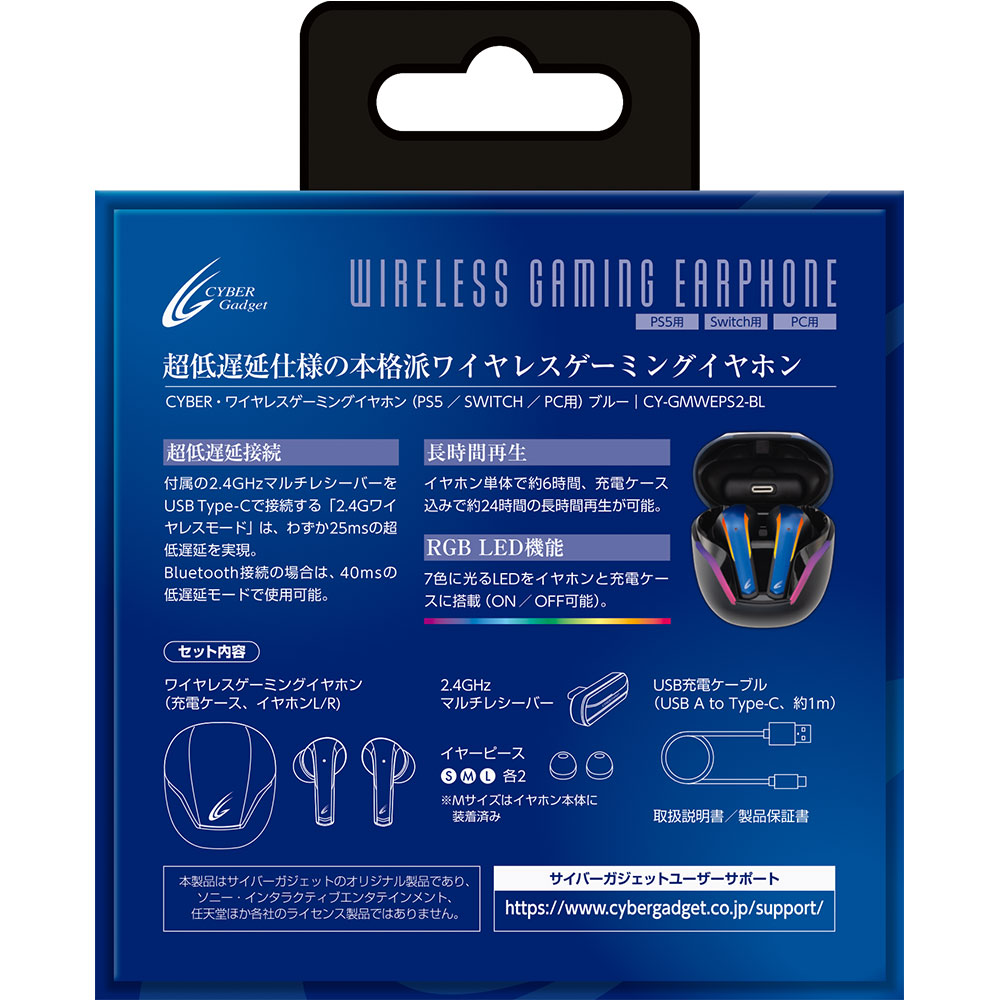 CYBER・ワイヤレスゲーミングイヤホン(PS5/SWITCH/PC用)ブルー