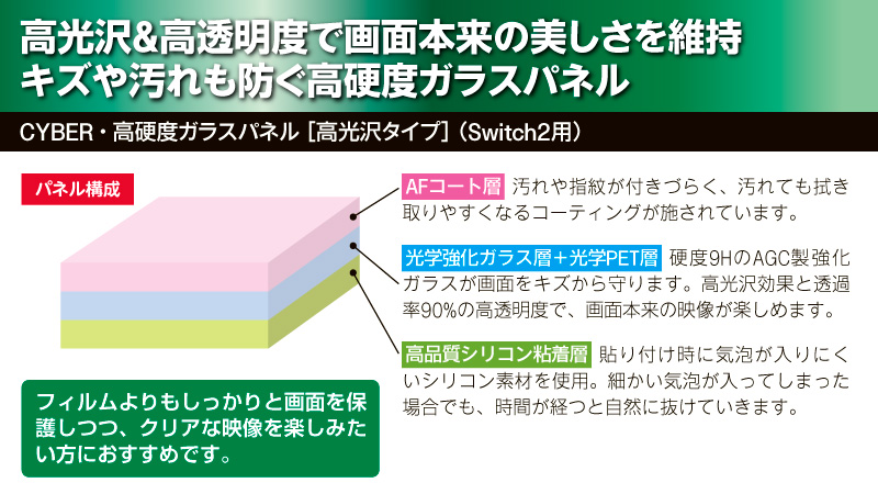 ![]() CYBER・高硬度ガラスパネル [高光沢タイプ] (Switch2用) |
