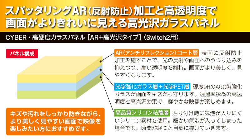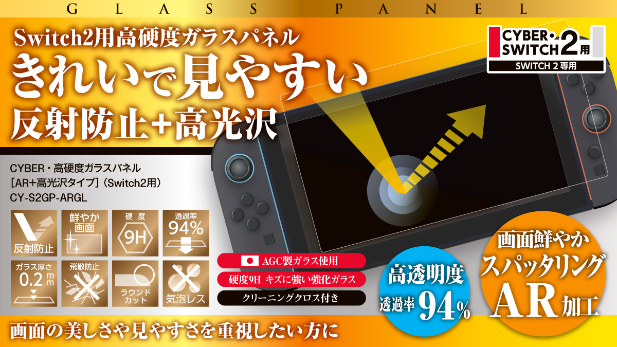 CYBER・高硬度ガラスパネル[AR+高光沢タイプ](Switch2用)