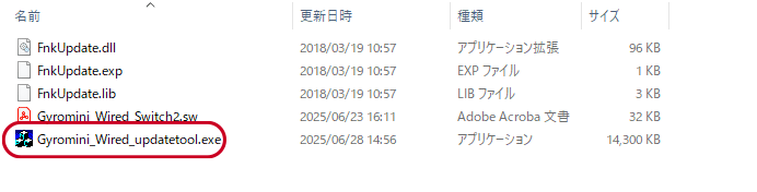 - ダウンロードしたファイルを右クリックし「すべて展開」を選択してファイルを展開後「Gyromini_Wired_Update」を実行します。