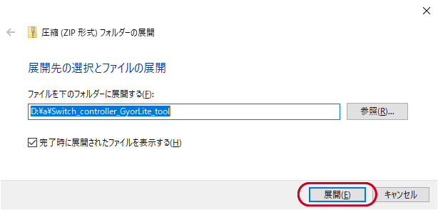 - ダウンロードしたファイルを右クリックし「すべて展開」を選択してファイルを展開後「GyroLite_Wired_updatetool」を実行します。