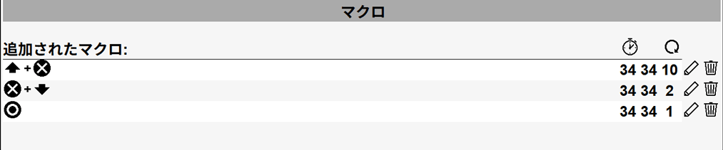 ・ボタンを連続してクリックすると、同時押しのマクロが作成できます(X+Yなど)。 - ④マクロを追加