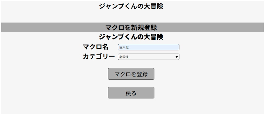 - カテゴリー: マクロの種類を入力します(例:「必殺技」「裏技コマンド」など)