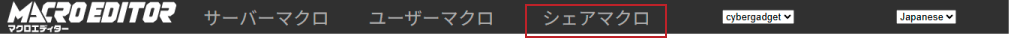 マクロエディターにログインすると、「サーバーマクロ」、「ユーザーマクロ」、「シェアマクロ」の機能が利用できます。