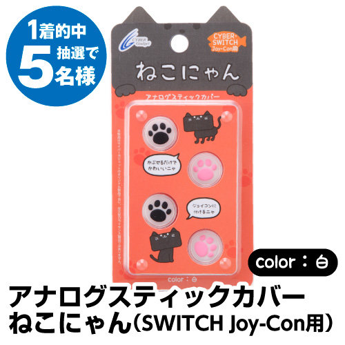 また、1着を当てた方の中から抽選で5名様に『CYBER・アナログスティックカバー ねこにゃん(SWITCH Joy-Con用)白』が当たります。