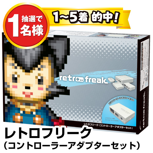 1〜5着を全部当てた方の中から抽選で1名様に『レトロフリーク(コントローラーアダプターセット)』をプレゼント!