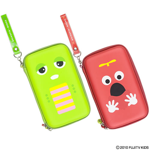 DS Lite/DSi用・PSP用と、様々な機種用に発売し大人気の「ガチャピン・ムック」アクセサリーシリーズにDSi LL用セミハードケースが新登場です。ケース表面のガチャピン・ムック柄に加えて、ファスナーチャームには、ガチャピンとムックがデザインされていてかわいさ倍増! ケース素材には軽量で耐衝撃性に優れた「EVA」を採用しているので、大事な本体をしっかりと保護します。また、ストラップも付属していますので持ち運びにも便利です。