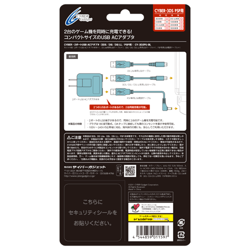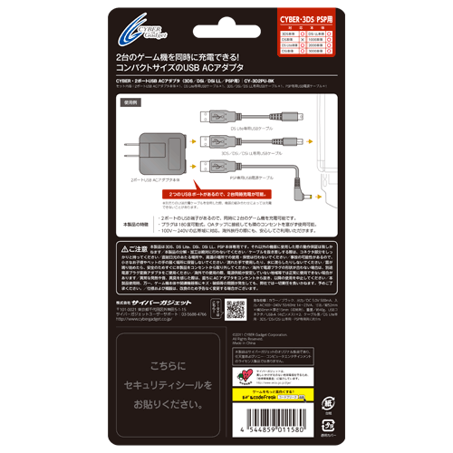 CYBER・2ポートUSB ACアダプタ(3DS/DSi/DSi LL/PSP用)販売終了