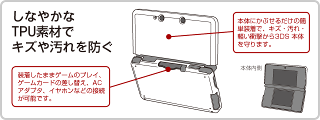 しなやかで丈夫なTPU素材の3DS用ジャケット。