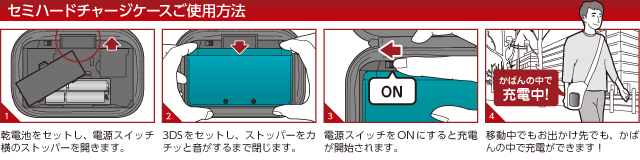 外出先でもゲームを長く遊べる! 乾電池式チャージャー内蔵のセミハードケース