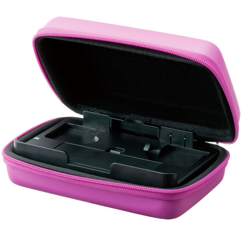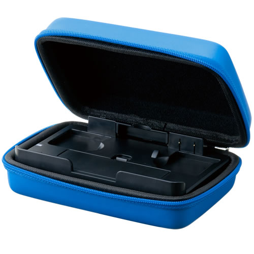 ケース素材には軽くて丈夫な「EVA」を採用。携帯中の衝撃や汚れから3DS本体を守ります。また、ファスナーが3DS本体に直接触れないように配慮された設計になっており、携帯中や開閉時などのキズを防ぎます。