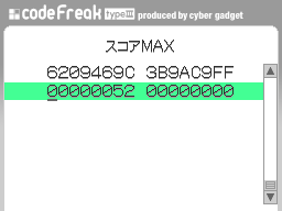 - ※秘技:ゲーム上であらかじめ用意されている裏技や、バグを利用したバグ技などとは異なり、コードフリークを使うことで可能になる効果の総称です。