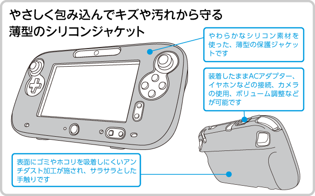 Wii U GamePad本体を包み込む、やわらかなシリコン素材の保護ジャケット