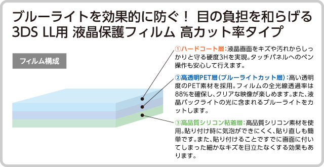 ブルーライトを最大約99%カット! 目の健康を守る3DS LL用液晶保護フィルム
