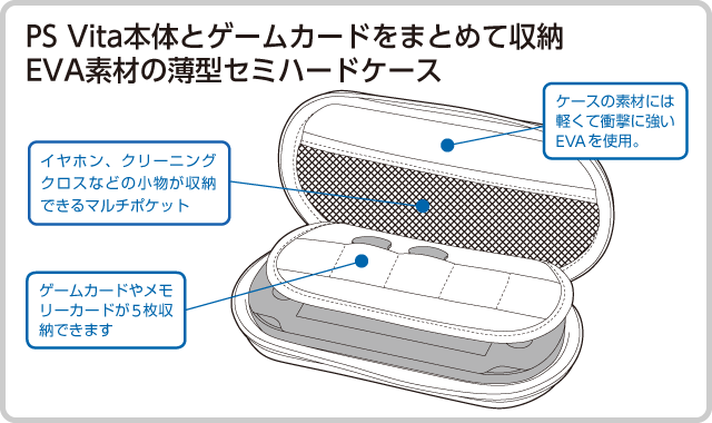 PS Vita本体と関連アイテムを収納できるセミハードケース!