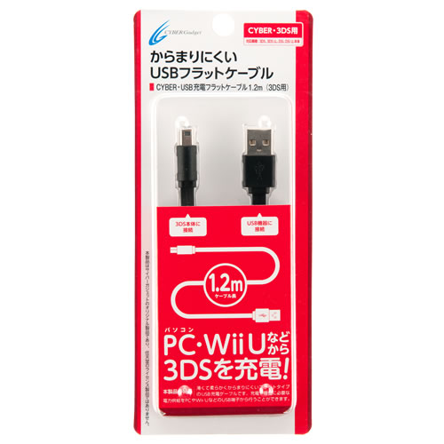 CYBER・USB充電フラットケーブル1.2m(3DS用)〈ブラック〉