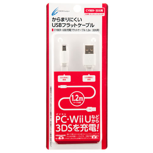 CYBER・USB充電フラットケーブル1.2m(3DS用)〈ホワイト〉