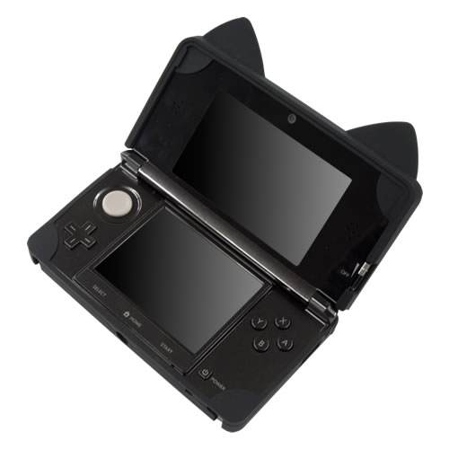 CYBER・シリコンカバー こねこにゃん(3DS用)〈ちびクロ〉を3DS に装着