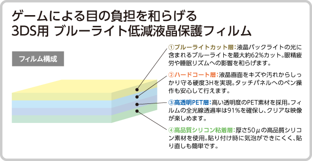 ブルーライトを最大62%カット! 目の健康を守る3DS用液晶保護フィルム