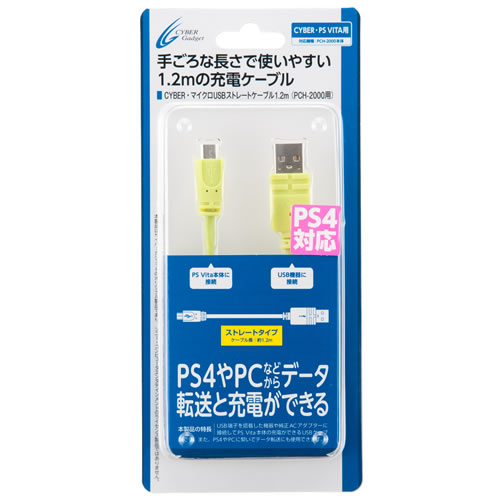CYBER・マイクロUSBストレートケーブル1.2m(PCH-2000用)〈ライムグリーン〉