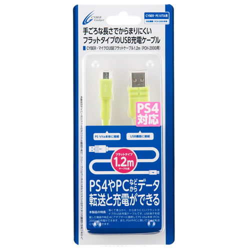 CYBER・マイクロUSBフラットケーブル1.2m(PCH-2000用)〈ライムグリーン〉