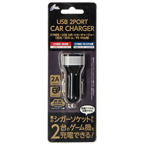 CYBER・USB 2ポートカーチャージャー(3DS/3DS LL/PS Vita用)〈ブラック〉