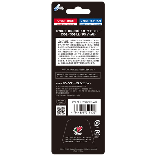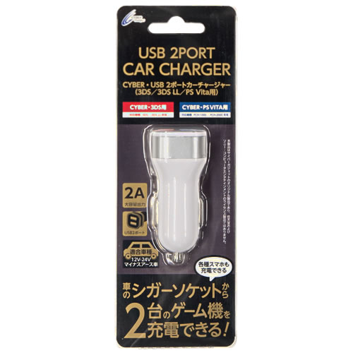 CYBER・USB 2ポートカーチャージャー(3DS/3DS LL/PS Vita用)〈ホワイト〉