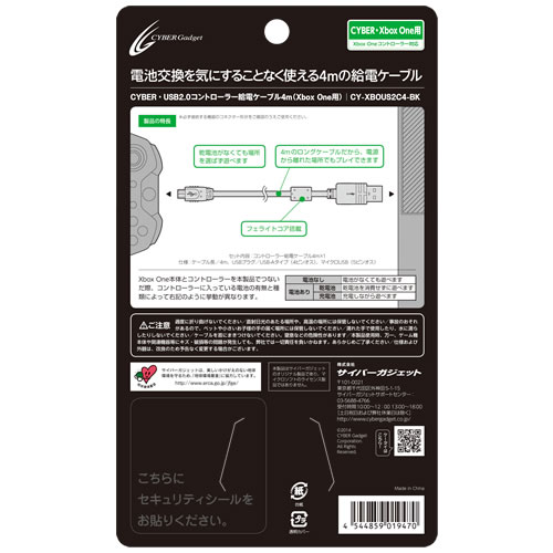 CYBER・USB2.0コントローラー給電ケーブル4m(Xbox One用)販売終了