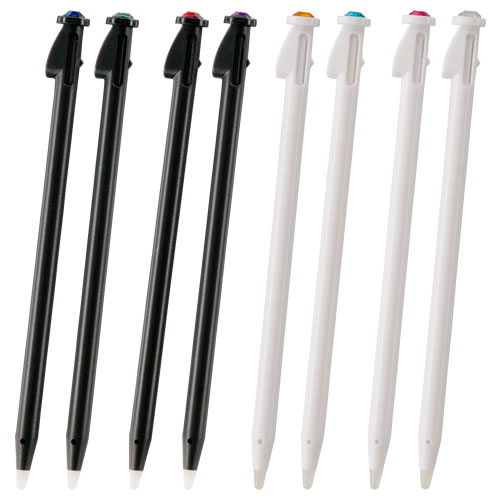 きらきら輝くラインストーンが付いた3DS LL用タッチペンです。ペン軸のカラーはブラックとホワイト、それぞれにあわせた色違いラインストーンがついたタッチペンを2本セットにしました。毎日の気分で付け替えたり、友だちと2人で分け合ったりできます! タッチペンは3DS LL本体にピッタリ収納できます。