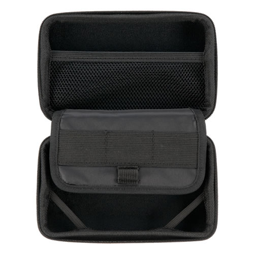 本体収納部にはセーフティーバンドを搭載。ケースを開けた際に、うっかり本体を落下させてしまうトラブルを防ぎます。また、ファスナーの金具や収納したアイテムが本体に直接触れない設計で、外部からの衝撃だけでなく内部でのキズにも気を配った収納ケースです。