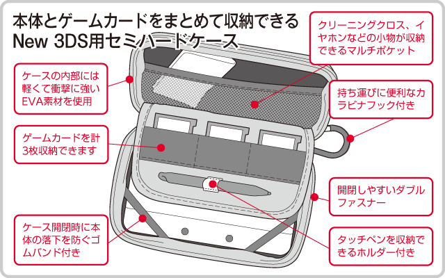 New 3DS本体とゲームカードをまとめて収納! 軽くて衝撃に強いセミハードケース
