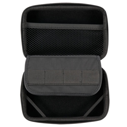 本体収納部にはセーフティーバンドを搭載。ケースを開けた際に、うっかり本体を落下させてしまうトラブルを防ぎます。ファスナーの金具や収納したアイテムが本体に直接触れない設計で、外部からだけでなく内部でのキズにも気を配った収納ケースです。