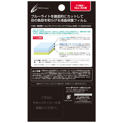 CYBER・液晶保護フィルム[ブルーライトハイカットタイプ](New 3DS用)販売終了