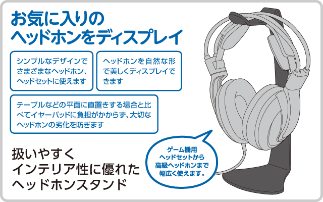 使用例:ゲーム機用ヘッドセットから高級ヘッドホンまで幅広く使えます。