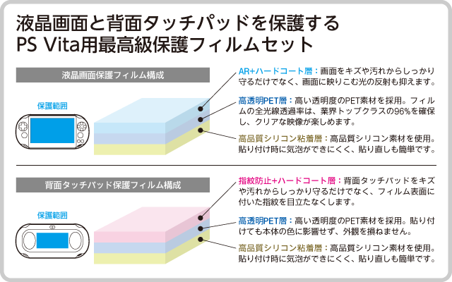 液晶画面&背面タッチパッドをキズや汚れから防ぐ! PCH-2000用保護フィルムセット Premium