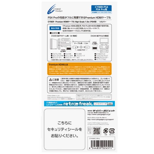 CYBER・Premium HDMIケーブル High Grade 1.5m(PS4用)販売終了