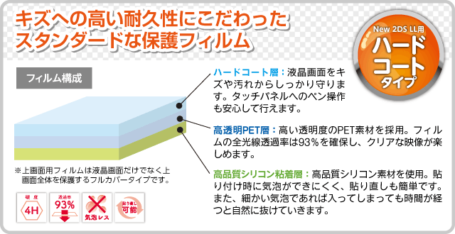 キズや汚れに強いハードコートタイプのNew 2DS LL用液晶保護フィルム