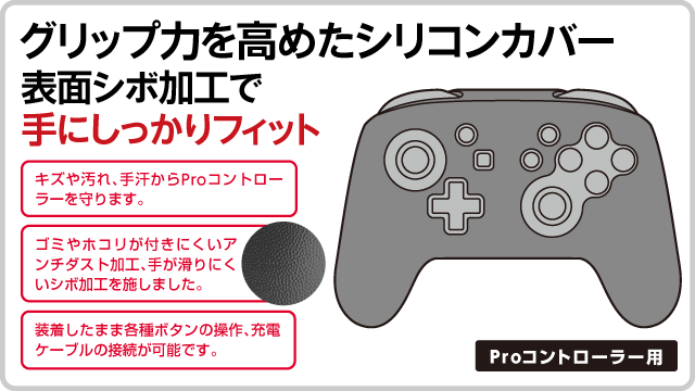 Switch Proコントローラーをキズや汚れから守るグリップ力抜群のシリコンカバー