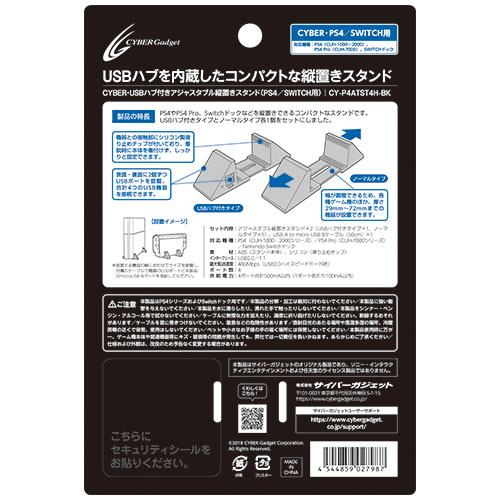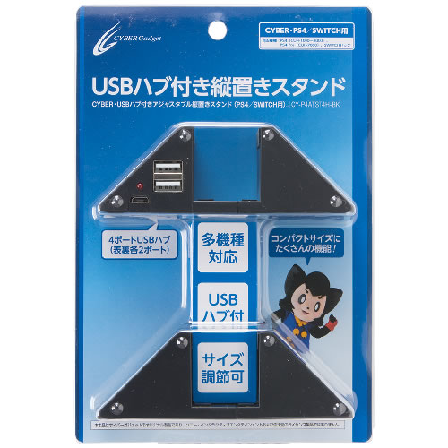 CYBER・USBハブ付きアジャスタブル縦置きスタンド(PS4/SWITCH用)販売終了