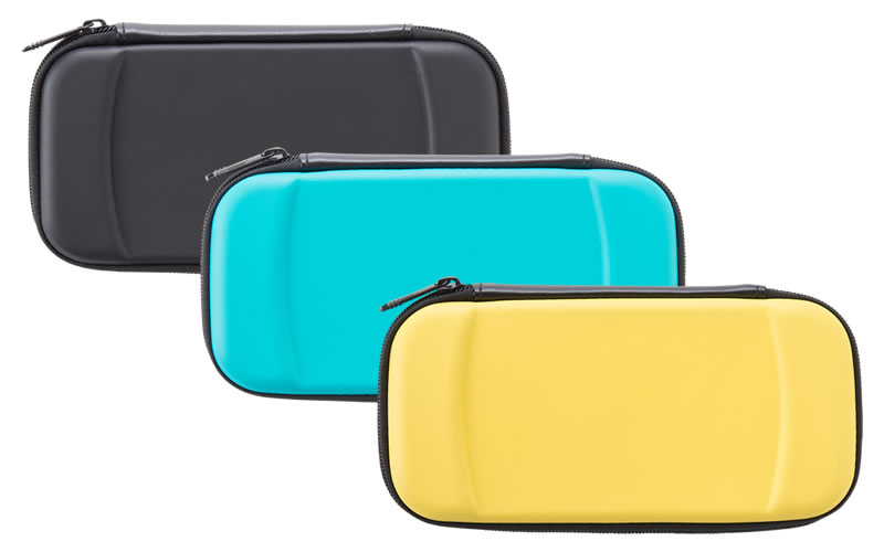 Switch Lite本体を収納できる超薄型のケースです。内部の仕切りやバンドを外し、Switch Lite本体の凹凸に沿った形状にすることで、本体が入るぎりぎりの薄さを実現しました(最厚部約32mm、最薄部約24mm)。非常に薄く軽いためコンパクトに持ち運びでき、カバンにもかさばらずスッキリ収納できます。