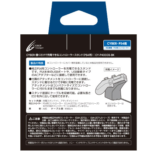 PS4用コントローラーにアタッチメントを装着 CYBER・置くだけで充電できるコントローラースタンド(PS4用)
