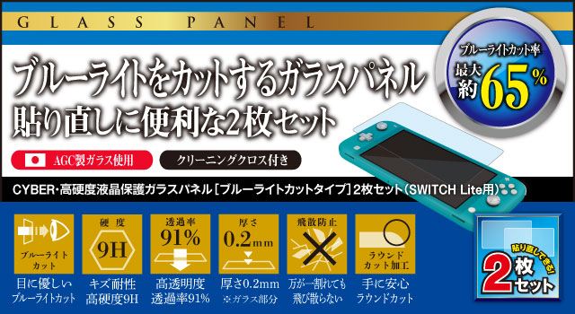 CYBER・高硬度液晶保護ガラスパネル[ブルーライトカットタイプ]2枚セット(SWITCH Lite用)販売終了