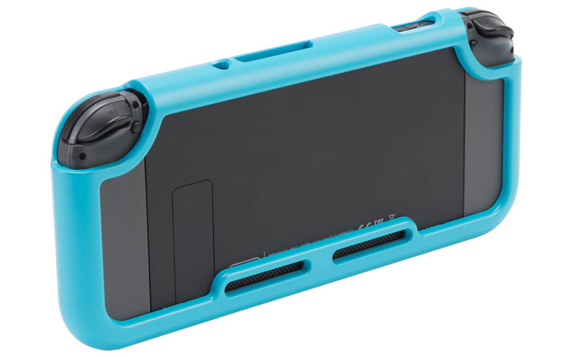Switch本体の液晶画面と側面を保護するバンパータイプの保護カバーです。前面用と背面用のバンパーにそれぞれマグネットが内蔵されているため、簡単にSwitch本体に取り付けることができます。装着したまま各種ボタン類の操作、充電ケーブルやイヤホンの接続が可能。Switch本体をドックにセットする際も取り外しが簡単なので、一般的なカバーよりも手軽にお使いいただけます。