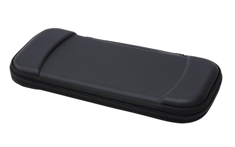 Switch本体を収納できる超薄型のケースです。内部の仕切りやバンドを外し、Switch本体の凹凸に沿った形状にすることで、本体が入る限界の薄さを実現しました(最厚部約32mm、最薄部約24mm)。非常に薄く軽いためコンパクトに持ち運びでき、カバンにもかさばらずスッキリ収納できます。