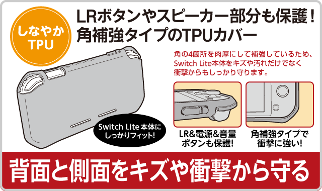 LRボタンやスピーカー部も保護するフラットタイプのSwitch Lite用TPUカバー