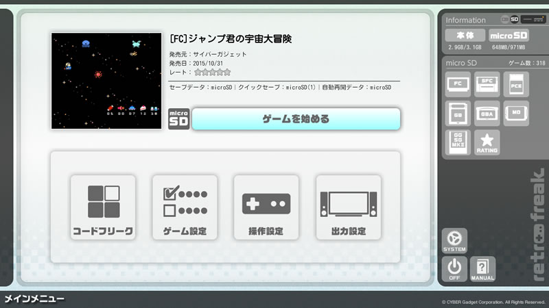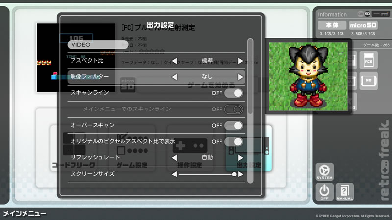 レトロフリークは、1台で11機種9000タイトル以上のカートリッジに対応したレトロゲーム互換機です。世界初となるPCエンジン互換やカートリッジ端子の劣化を防ぐインストール機能などの各種機能を、従来のレトロゲーム互換機とは全く異なるハード設計により実現しました。HDMI出力やクイックセーブ機能、インストール機能など、当時のゲームをより鮮明に、より遊びやすくするための機能が満載です。