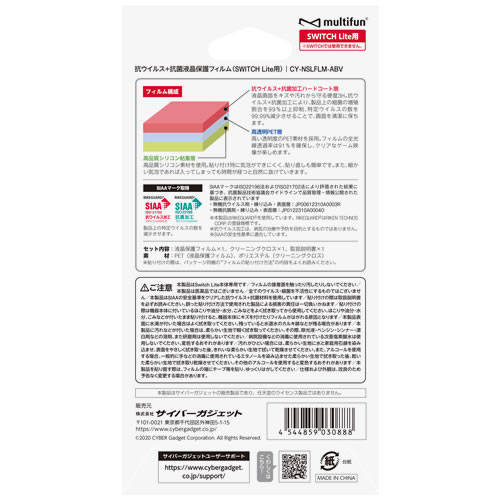 特定ウイルスの数を減少させ、細菌の増殖を抑制! 抗ウイルス+抗菌タイプのSwitch Lite用液晶保護フィルム