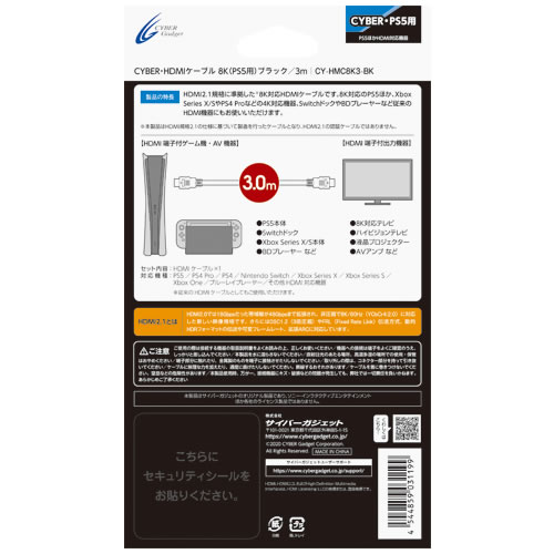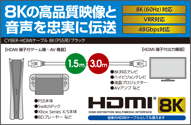 CYBER・HDMIケーブル 8K(PS5用)ブラック