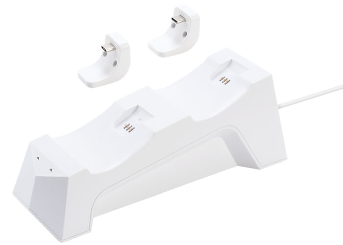 付属のアタッチメントをコントローラーに装着しておくことで、スタンドに載せるだけで手軽に充電できます。アタッチメントはコンパクトなデザインのため、コントローラーに付けたままでも邪魔になりません。